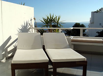 Sea view apartment located in the popular community of Las Terrazas with direct access to the marina and the beach of Puerto Portals. The property comprises; 2 double bedrooms, 2 bathrooms (1 ensuite), kitchen with separate utility room. Bright lounge/dining room with direct access to a sunny terrace with marina and sea views.The complex offers community pool, garden and parking.
