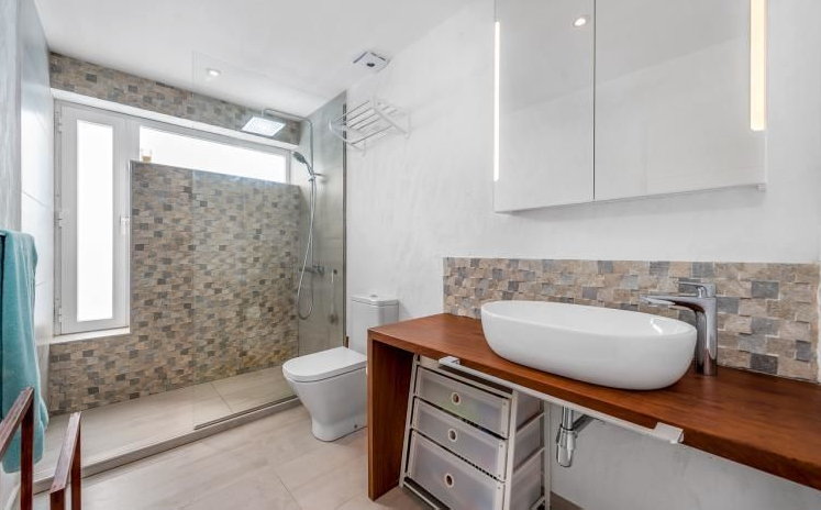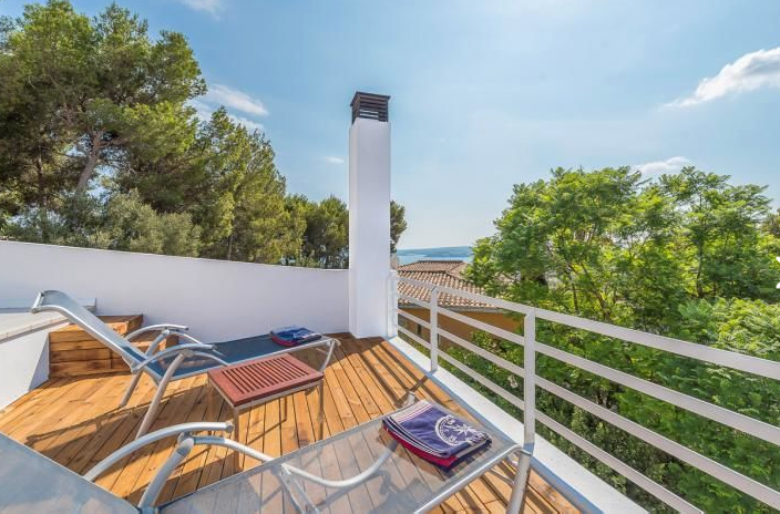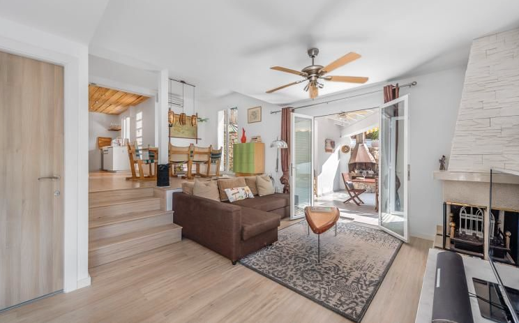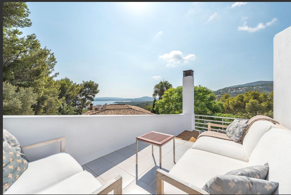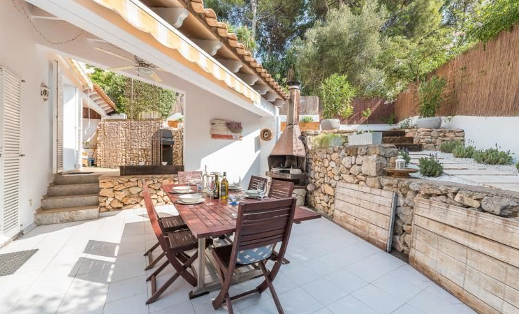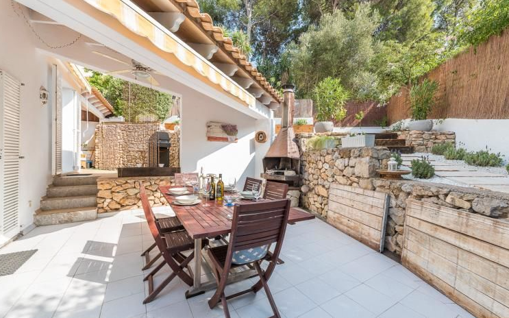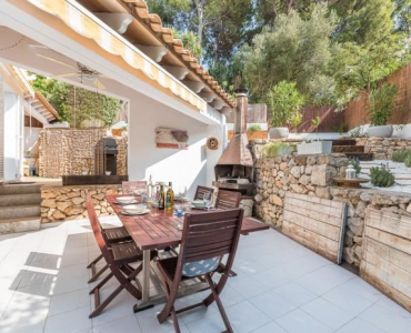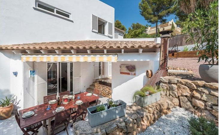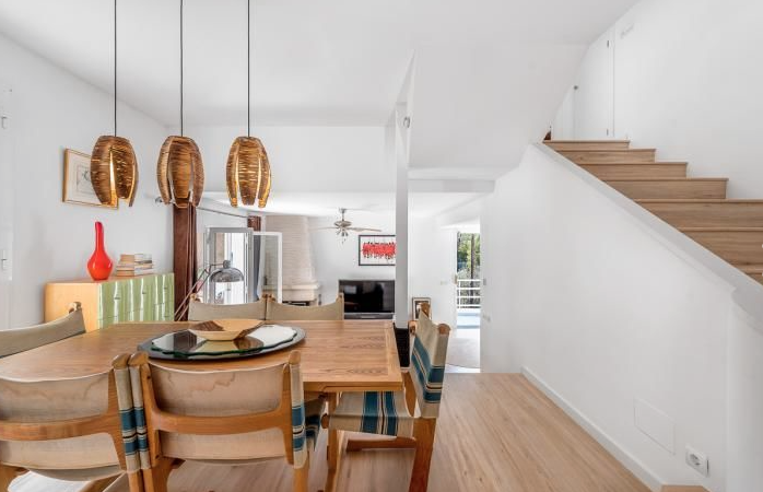Beautiful and completely reformed corner townhouse within walking distance of the village of Portals Nous. The property offers; Split level lounge/dining room with fireplace, open plan kitchen, 3 double bedrooms and 2 bathrooms. Includes; Dining terrace, private garden, roof terrace with panoramic views, garage and community pool.