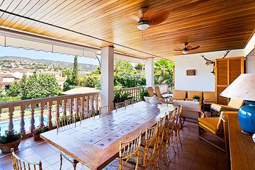 Ideal family villa located within walking distance of the pretty Bendinat beach and only 5 minutes away from the village of Portals Nous with all its amenities. Comprises; 4 bedrooms each with terrace access and bathrooms ensuite, spacious lounge/dining area with open fireplace and a modern fitted kitchen. Includes; Landscaped gardens, large pool surrounded by wooden decking, covered terraces with BBQ area and double garage.