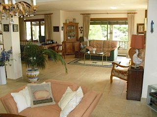 Bright villa located on a large plot and with panoramic sea views, within a short distance of all local amenities. Comprising; On the upper floor a spacious lounge/dining room with fireplace, large kitchen, 3 bedrooms and 1 bathroom. On the lower level is the master bedroom with bathroom en-suite and sauna. The property includes air-conditioning hot/cold, underfloor heating throughout, private pool, small pond, large garden and garage