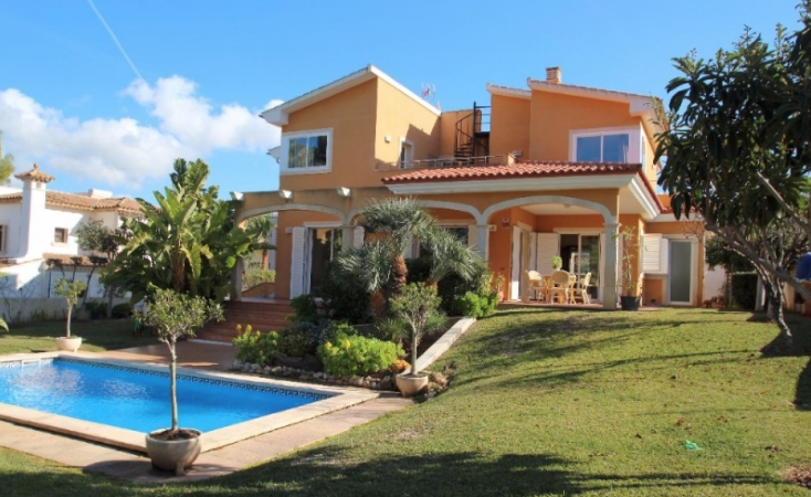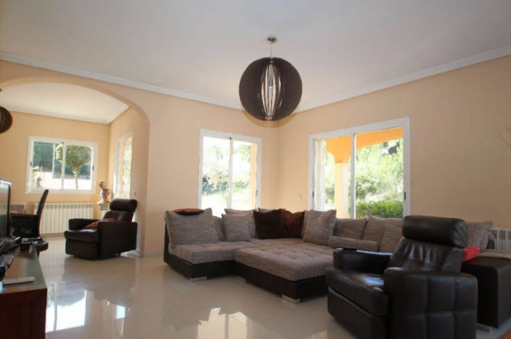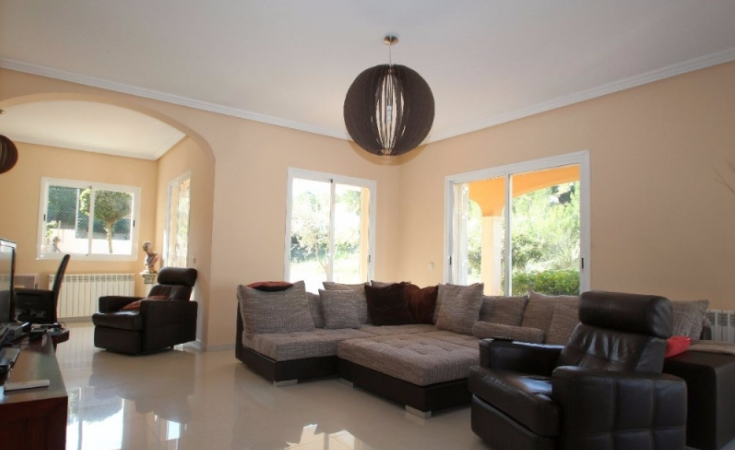 Large familly villa located in a quiet residential area of Nova Santa Ponsa. Within a 5 min drive from Port Adriano and the golf course, this bright villa offers 5 bedrooms, 3 bathrooms (1 ensuite), open plan living/dining room split on 2 levels and separate kitchen with laundry room. Including; private pool on a flat plot, big garage for several cars, storeroom, gas central heating and aircon throughout.