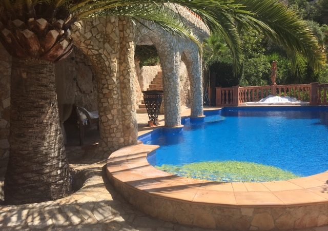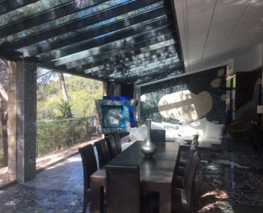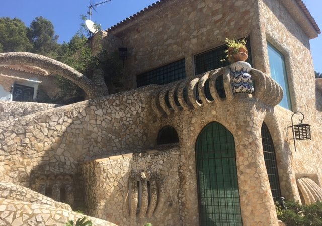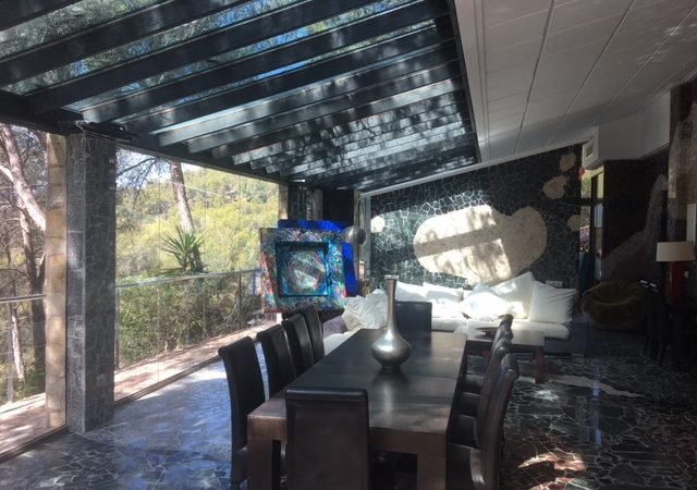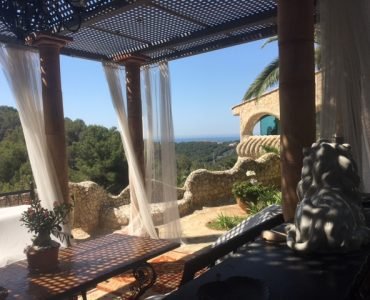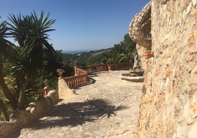 Unique villa with sea views on a completely secluded large plot on the top area of Genova. This extraordinary Gaudi style house comprises 3 bed/3 bath, lounge, dining area and kitchen. On the vast grounds there is a guest house with 1 bedroom. The house, surrounded by private woodland, offers a swimming pool with outdoor dining area, several terraces, garage and outdoor parking for several cars.
