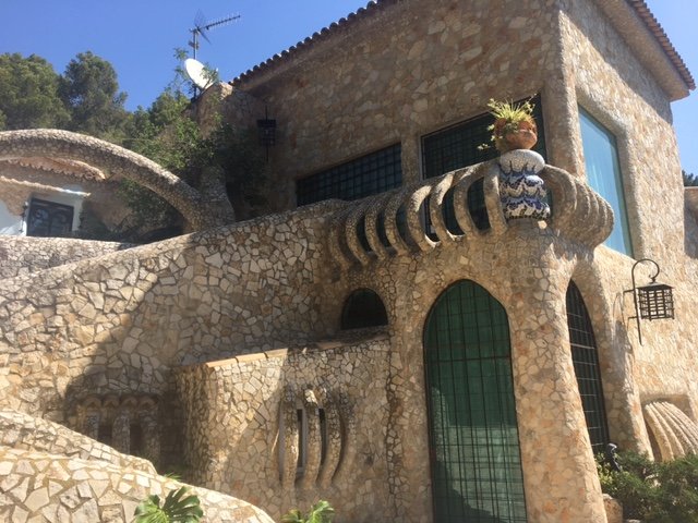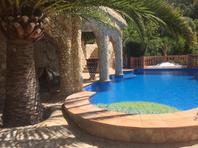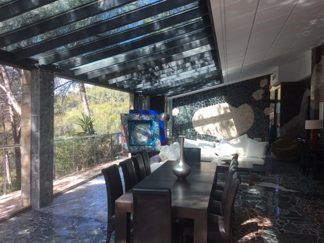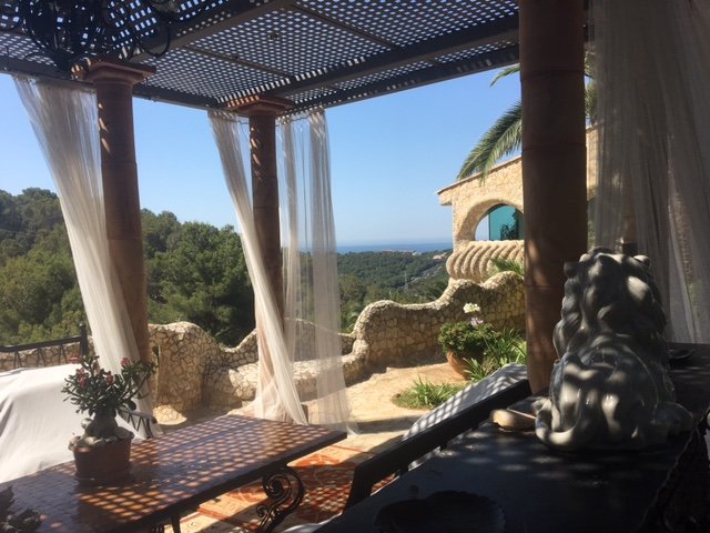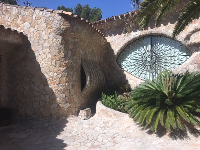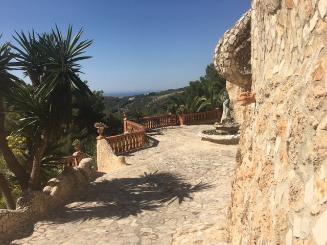 Unique villa with sea views on a completely secluded large plot on the top area of Genova. This extraordinary Gaudi style house comprises 3 bed/3 bath, lounge, dining area and kitchen. On the vast grounds there is a guest house with 1 bedroom. The house, surrounded by private woodland, offers a swimming pool with outdoor dining area, several terraces, garage and outdoor parking for several cars.