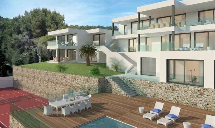 Mediterranean style villa with great potential, located on one of the largest plots in Costa den Blanes and enjoying fantastic panoramic sea views. The property of 1,316m2 consists of; a main house with 5 bedrooms and 5 bathrooms plus another 7 bedrooms and 4 bathrooms for guests. Includes; Central heating, aircon, tennis court, private gardens and swimming pool. Project available.