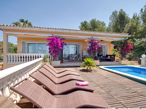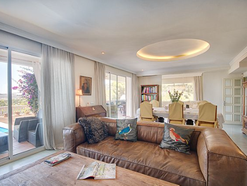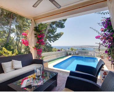 Well located villa with panoramic sea views in the village of Portals Nous. This large property has 3 bedrooms, 2 bathrooms, guest toilet, lounge with fireplace, separate dining area, kitchen and laundry room. It includes; a separate 1 bedroom guest apartment, double garage and private swimming pool.
